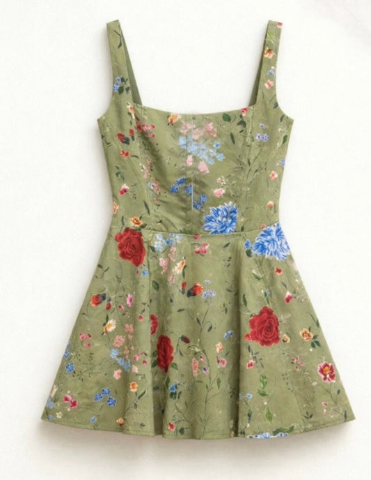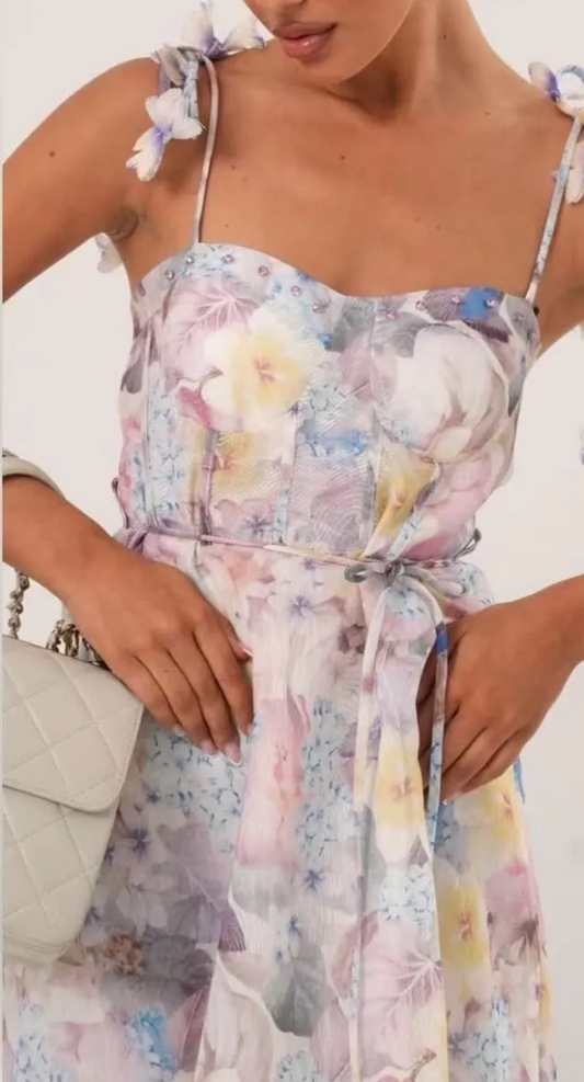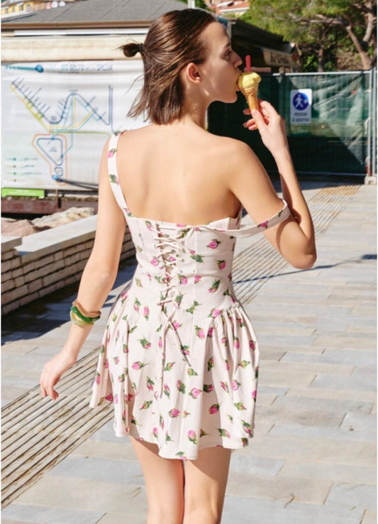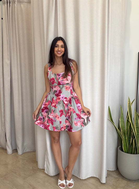 Mini φόρεμα φλοράλ με κορσέ & δέσιμο στην πλάτη Lumina