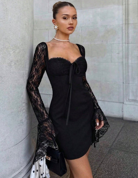 Μακρυμάνικο φόρεμα με δαντέλα
