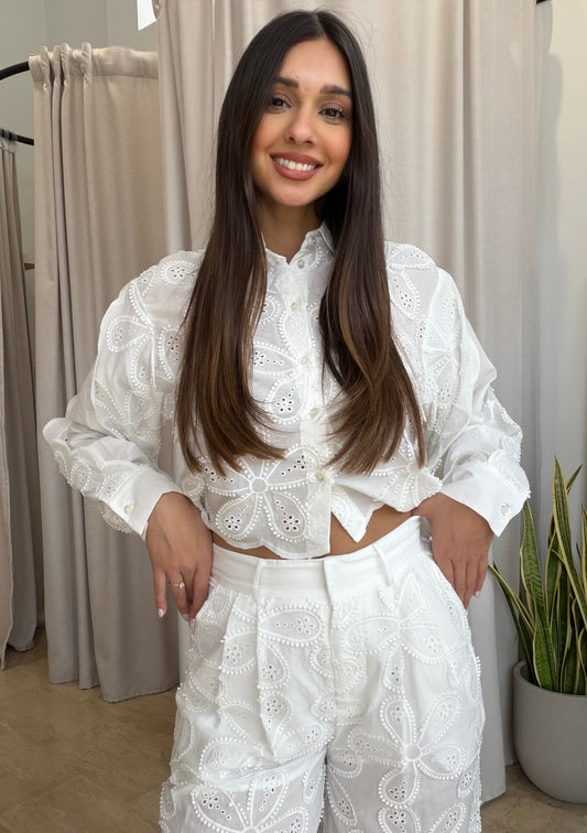 Σετ broderie με crop πουκάμισο & παντελόνα