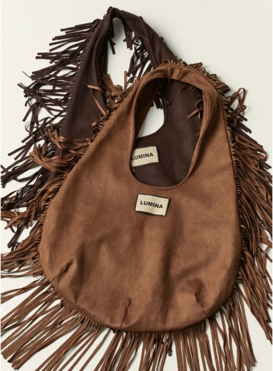 Leyla Σουέντ τσάντα δερμάτινη με κρόσσια