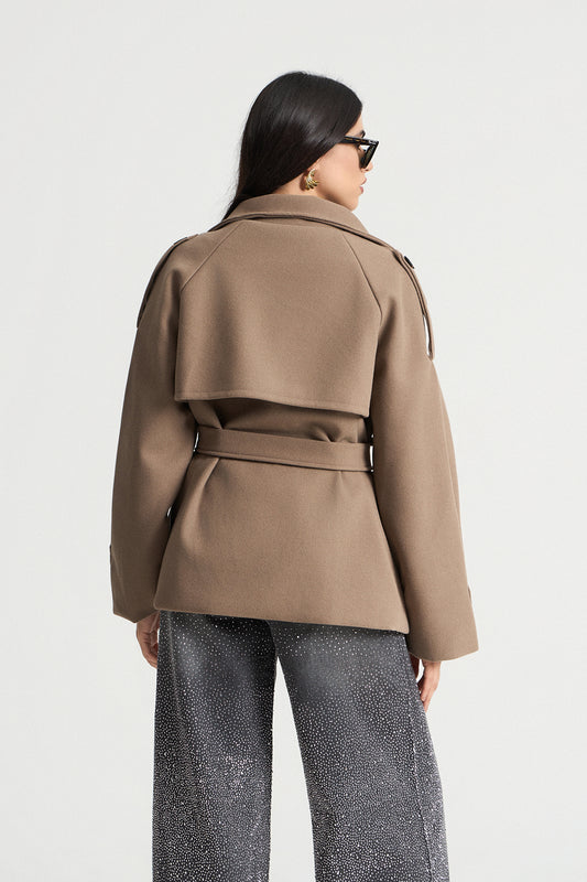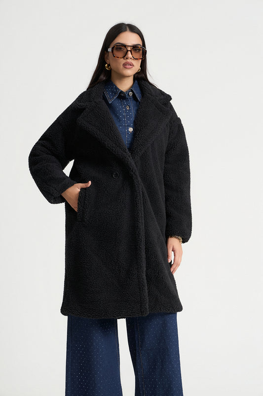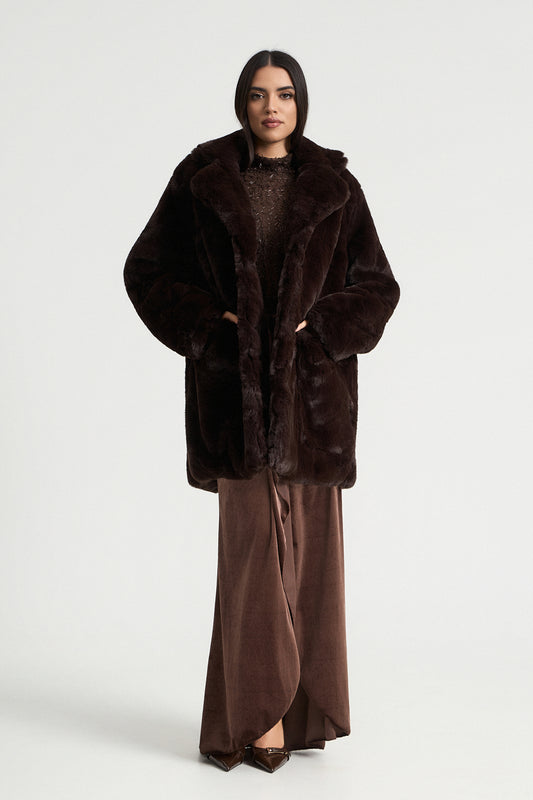 Παλτό με αποσπώμενη faux γούνα στο γιακά