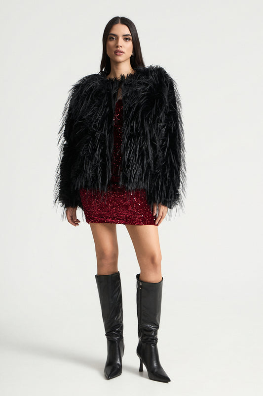 Σουέντ τζάκετ με κρόσσια & φερμουάρ