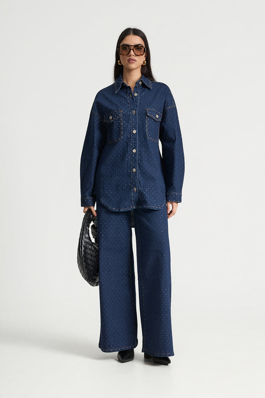 Τζιν σετ πουκάμισο και παντελόνι πουά