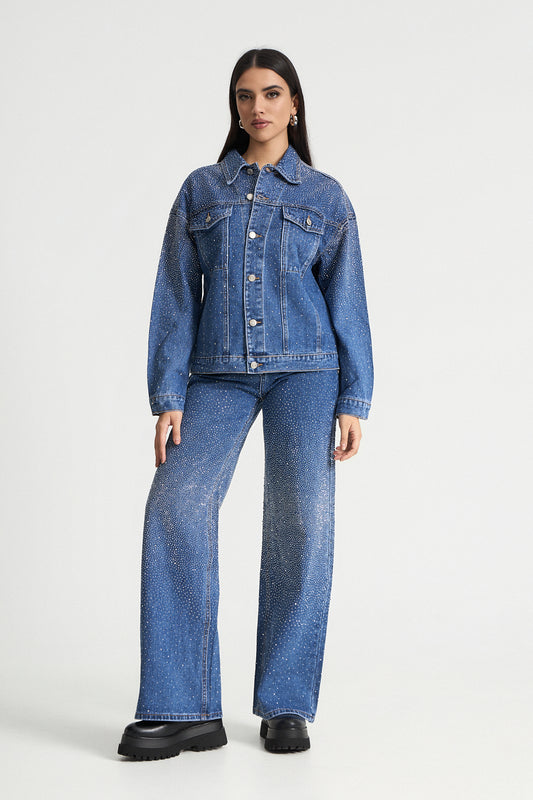 Τζιν σετ πουκάμισο με τσέπες & παντελόνι