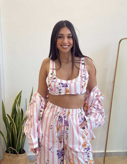 Lumina Floral Ριγέ Πουκάμισο με Τοπ