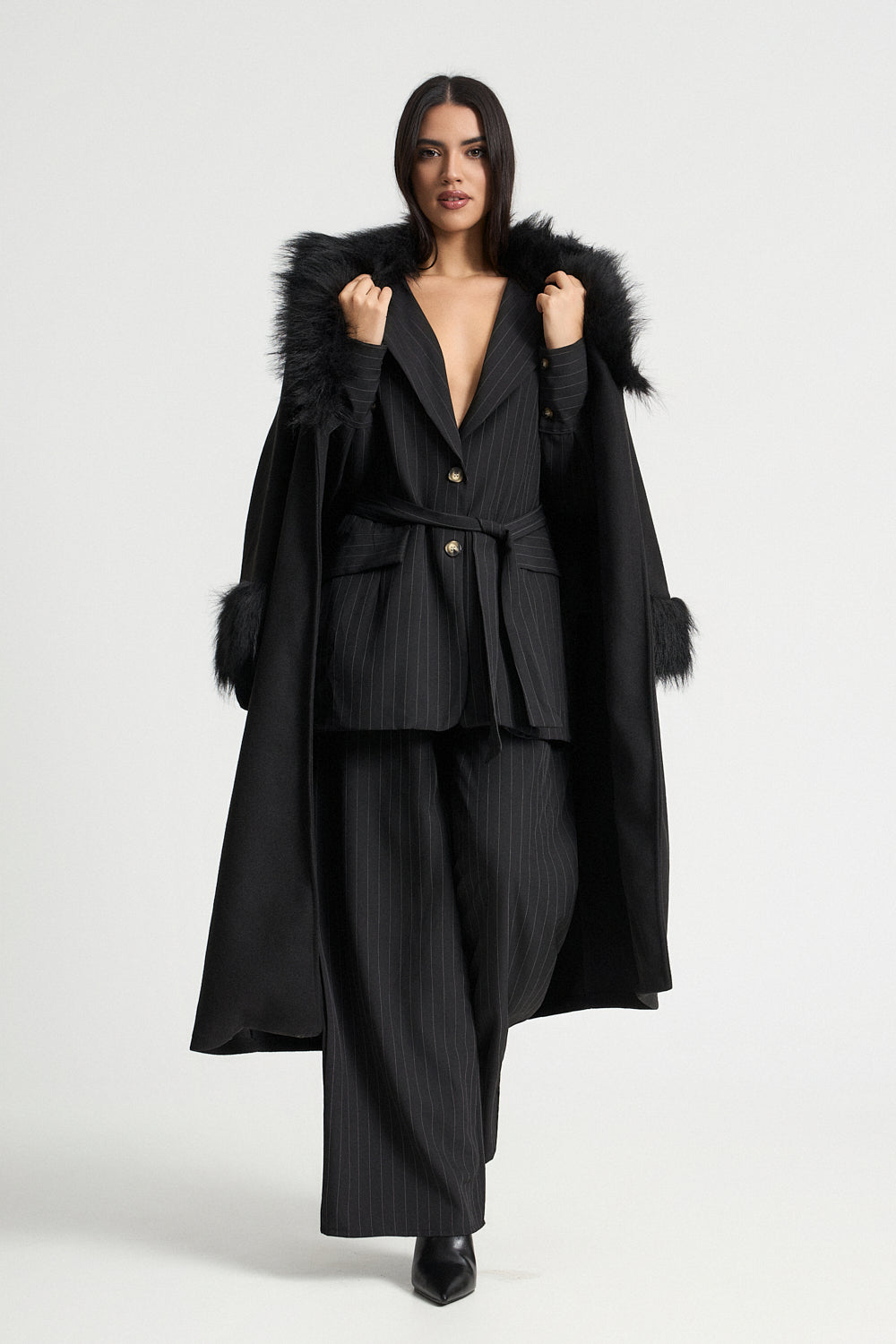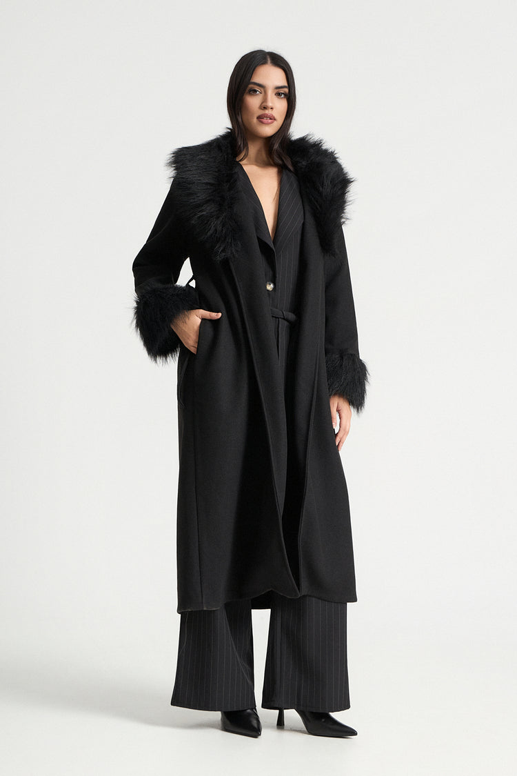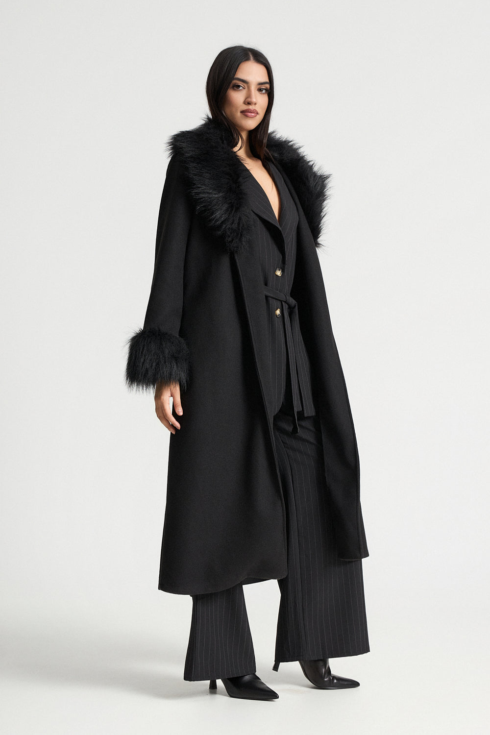 Παλτό με αποσπώμενη faux γούνα στο γιακά