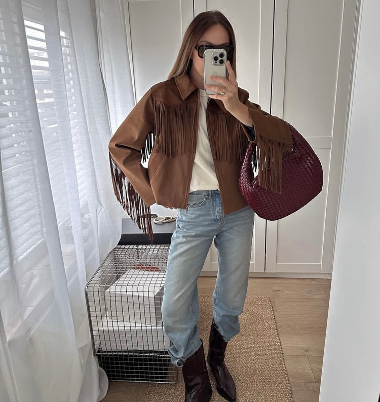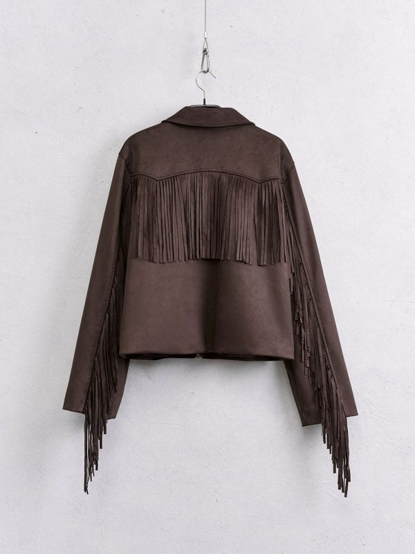 Σουέντ τζάκετ με κρόσσια & φερμουάρ