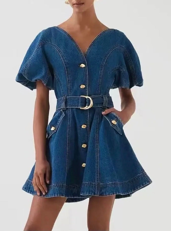 Τζιν φόρεμα με ζώνη και κουμπιά