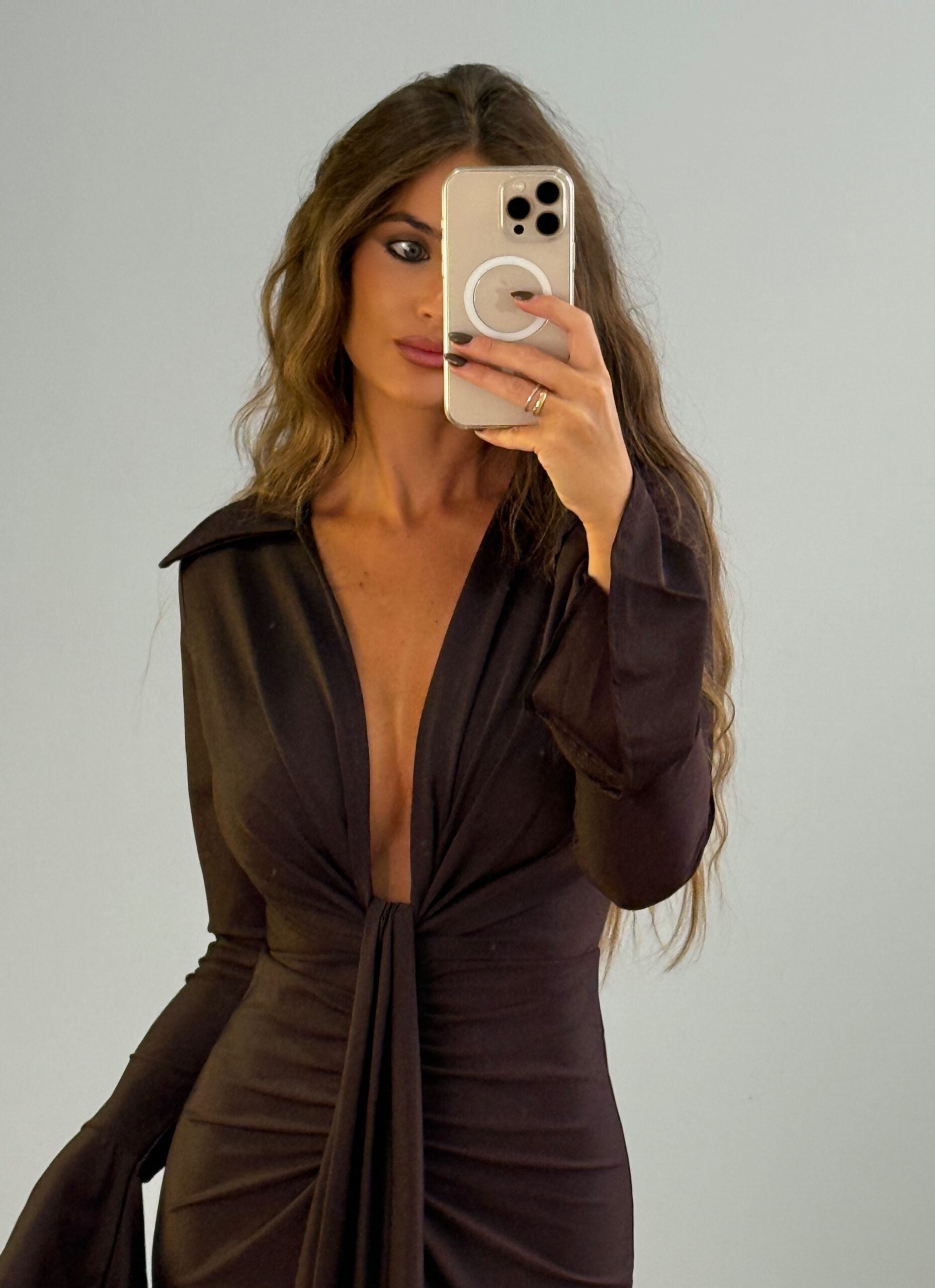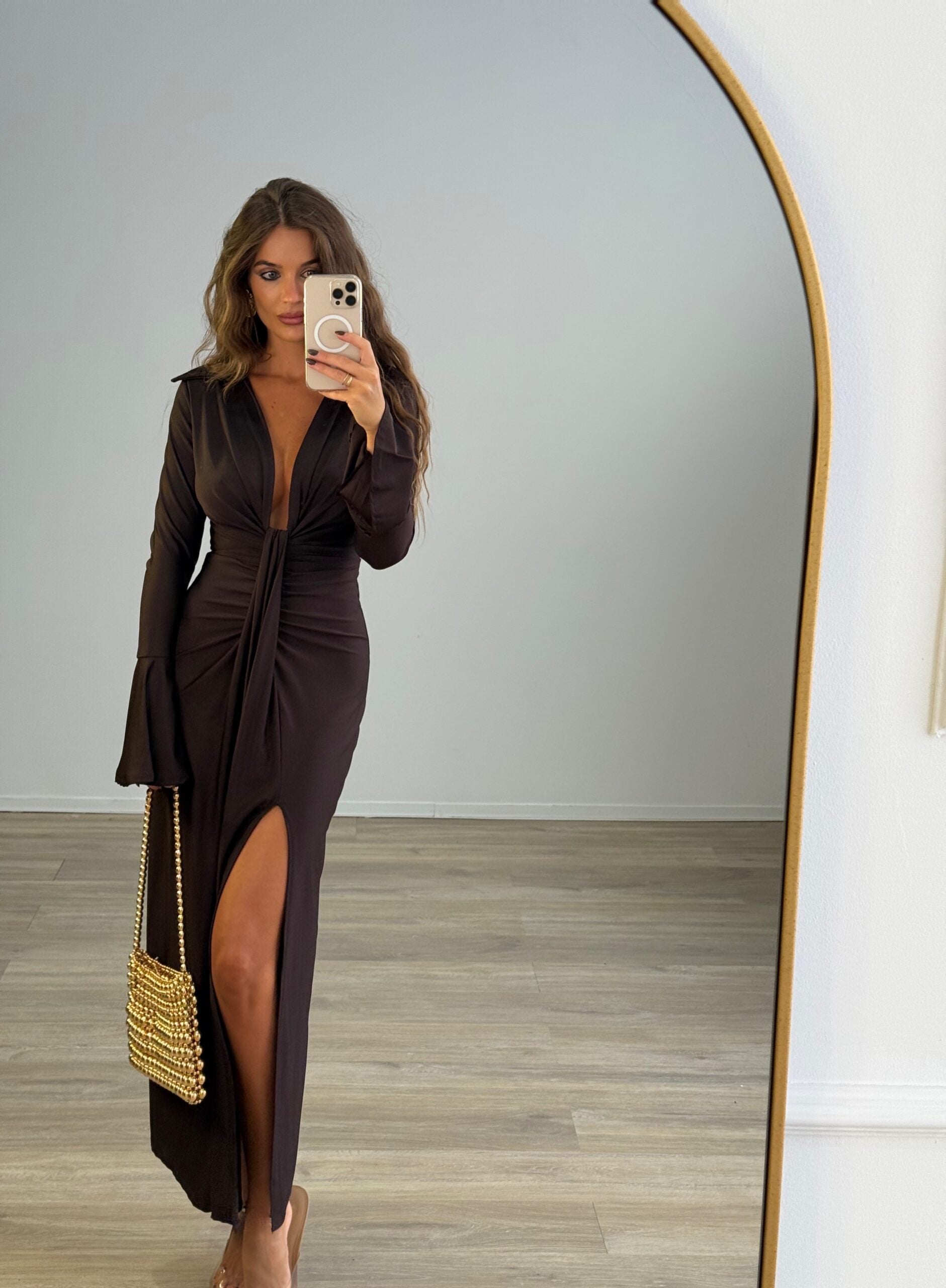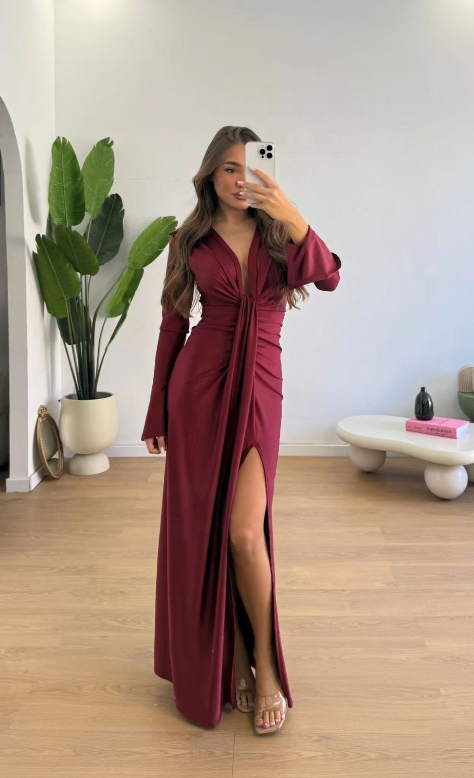 Φόρεμα μακρυμάνικο με ντεκολτέ