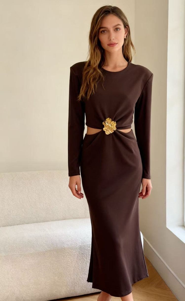 Φόρεμα cut out με χρυσή λεπτομέρεια