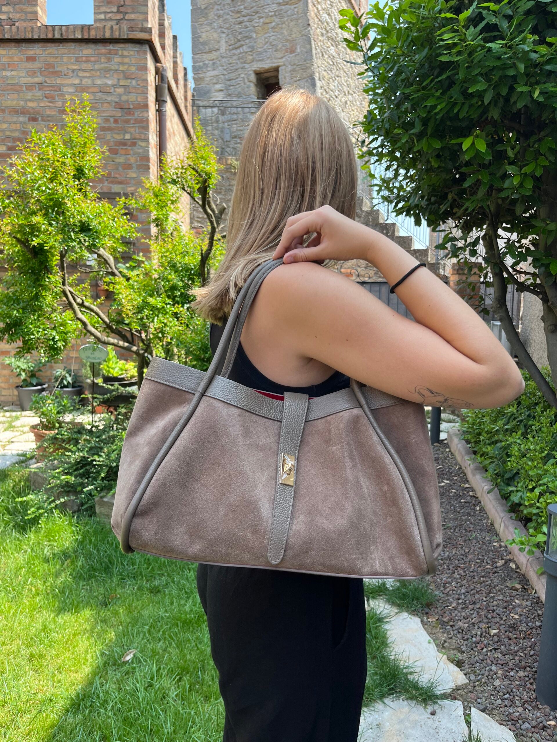 Aura Σουέντ Δερμάτινη Τσάντα