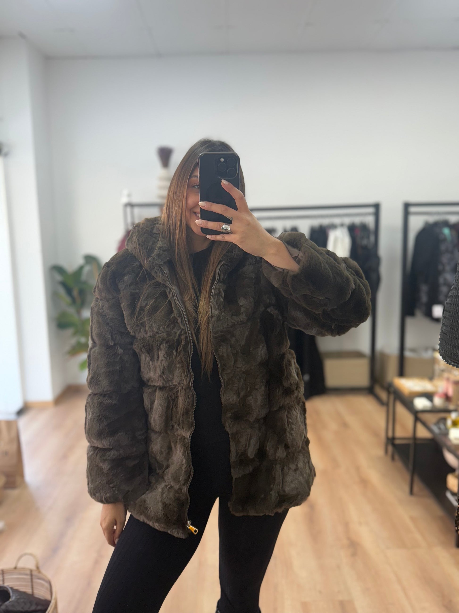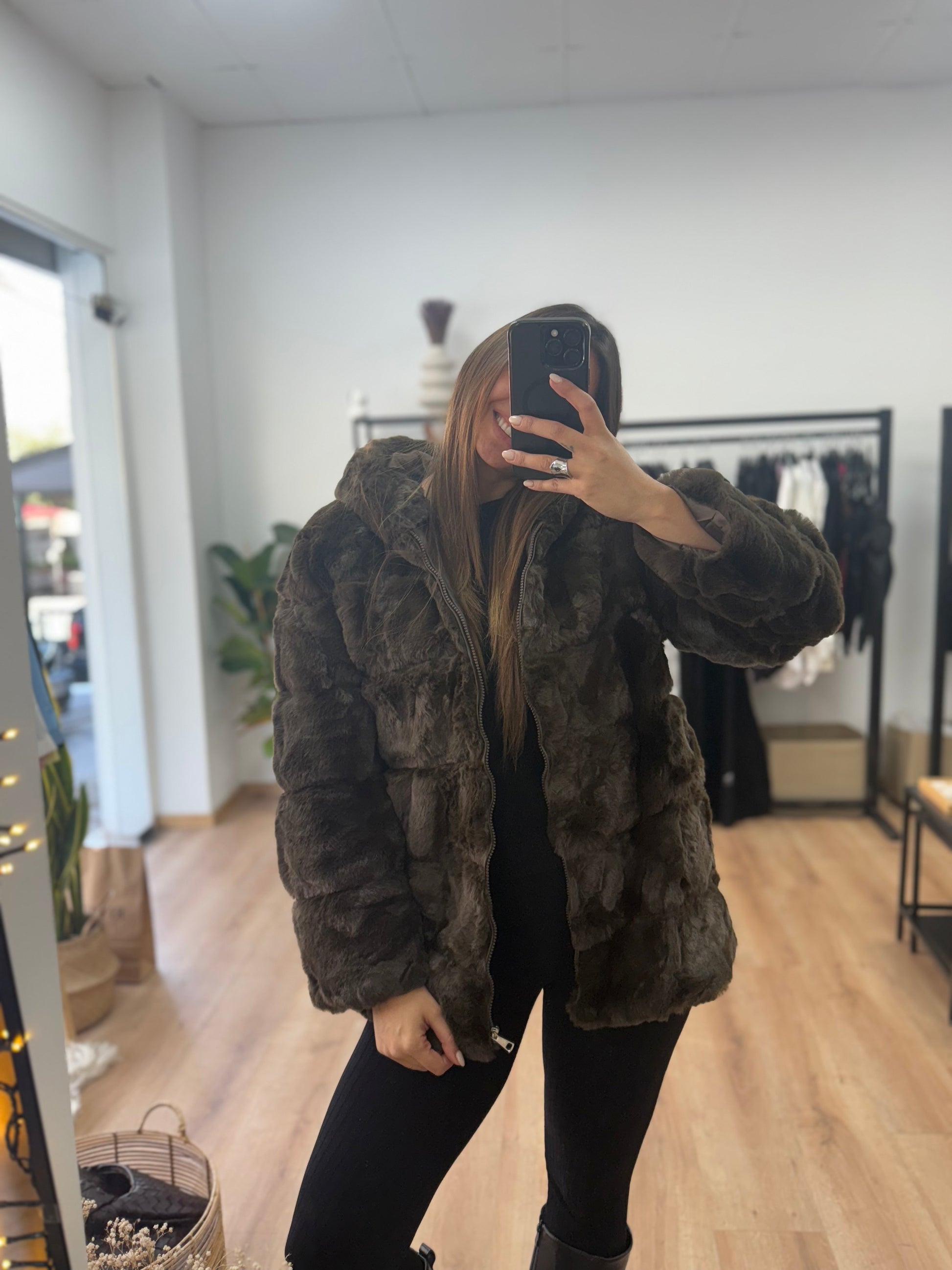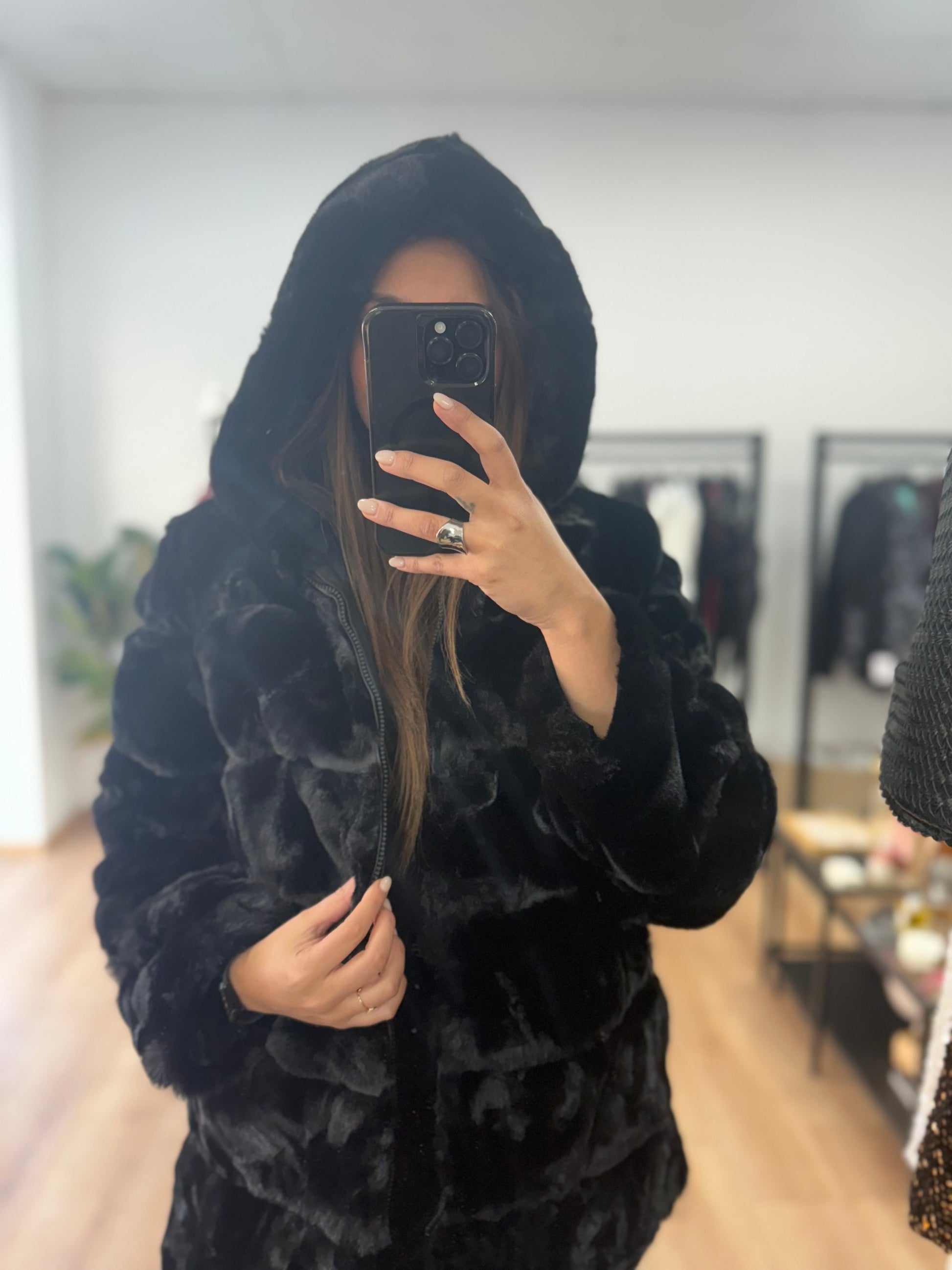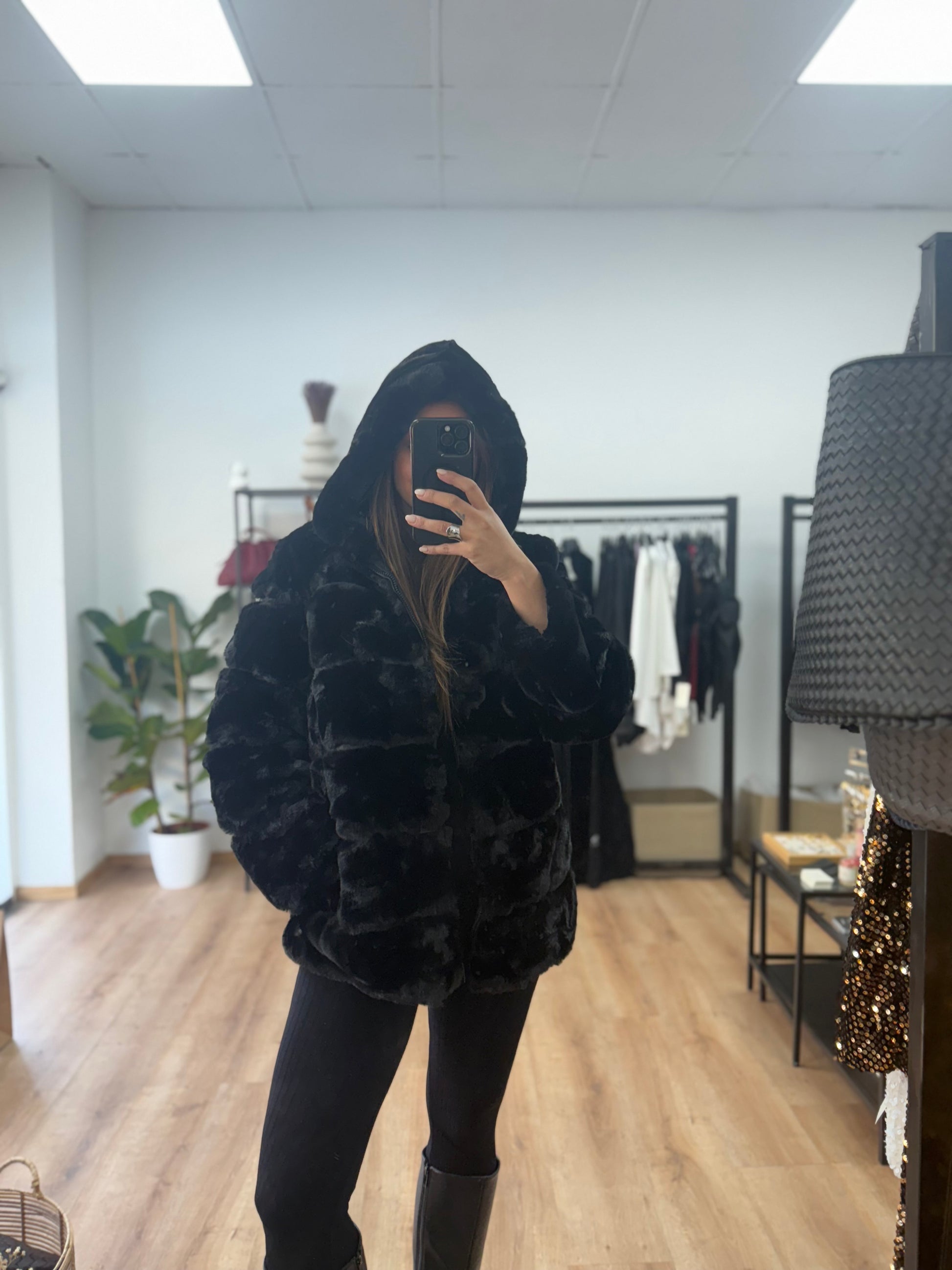 Faux Γούνα με κουκούλα και φερμουάρ
