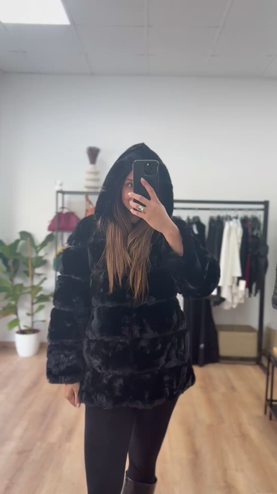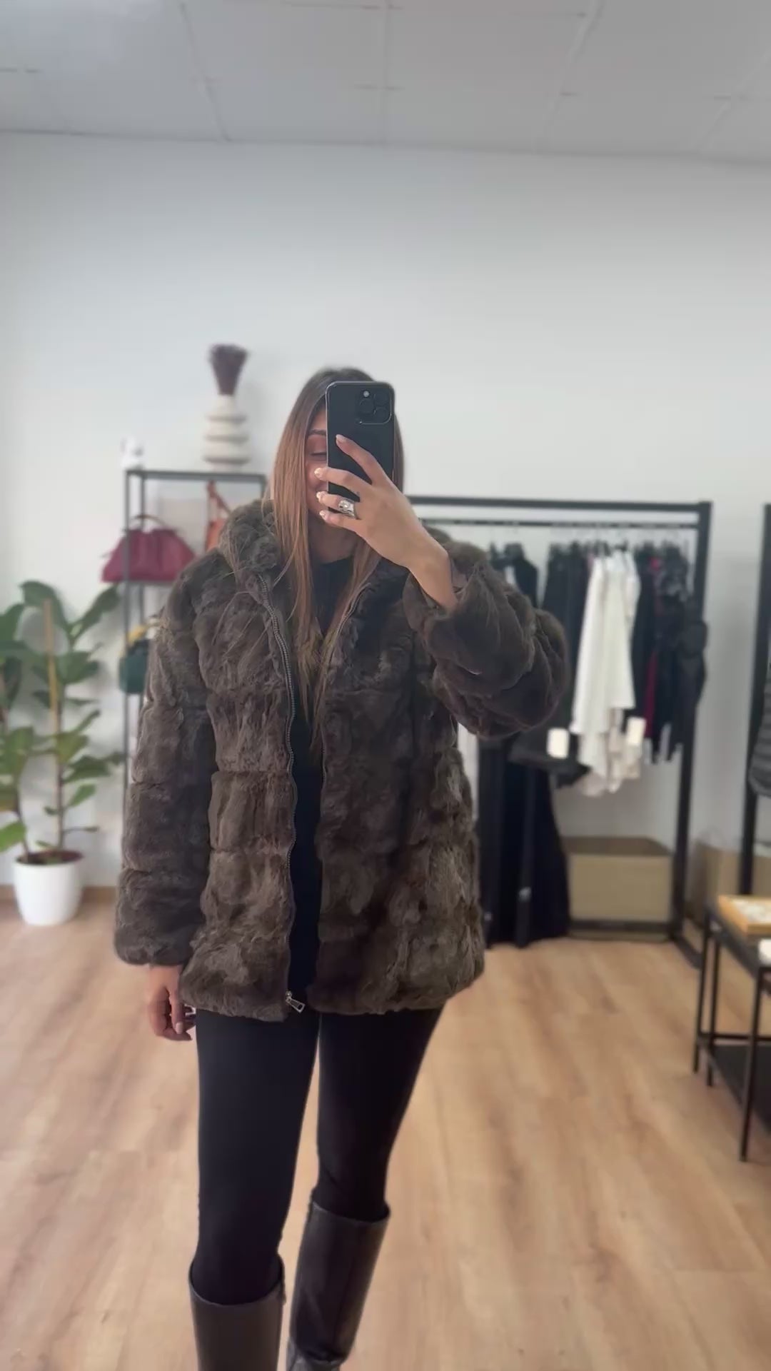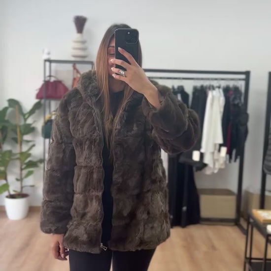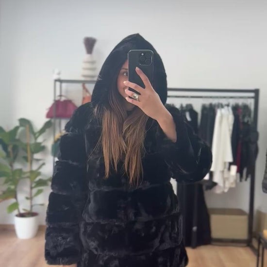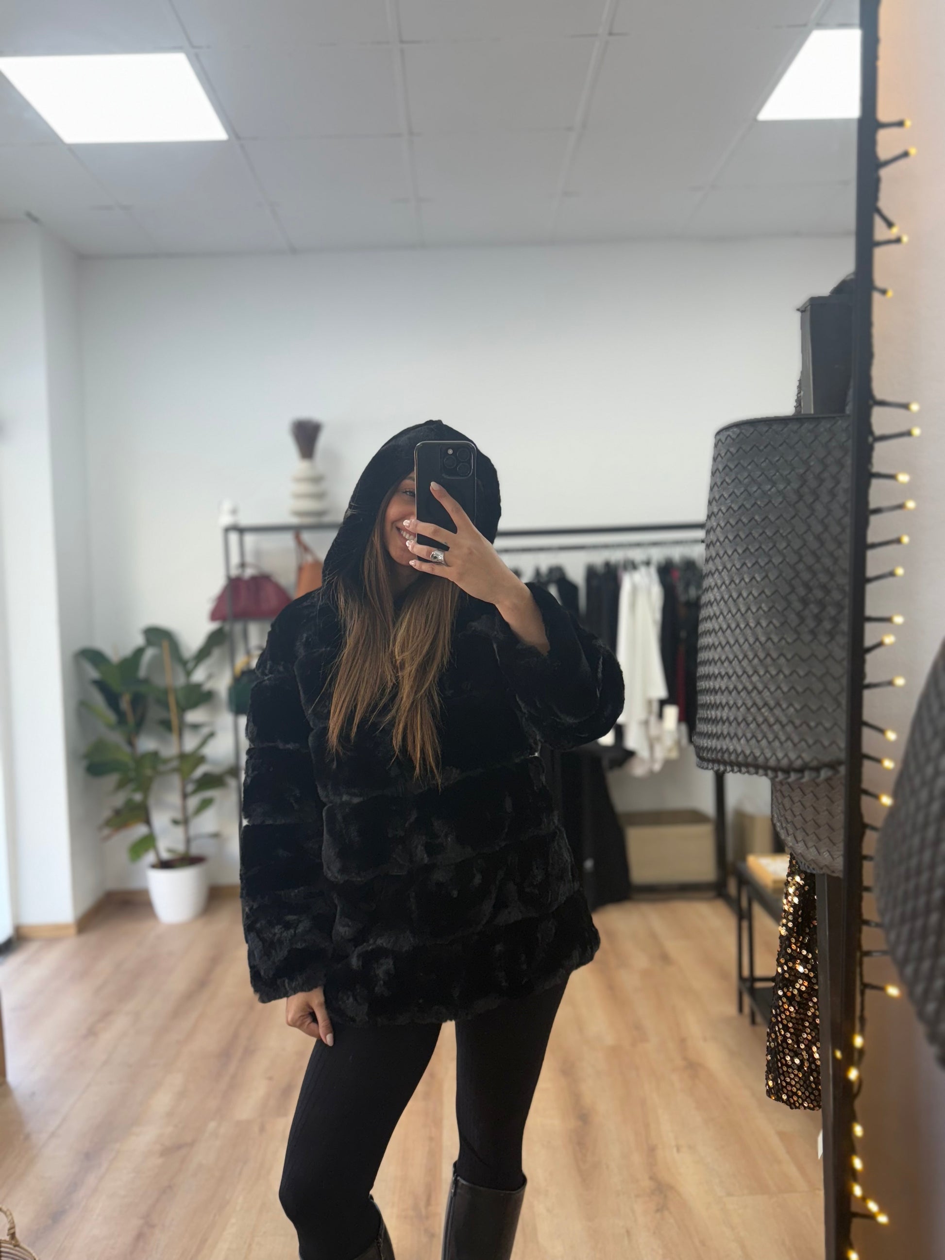 Faux Γούνα με κουκούλα και φερμουάρ