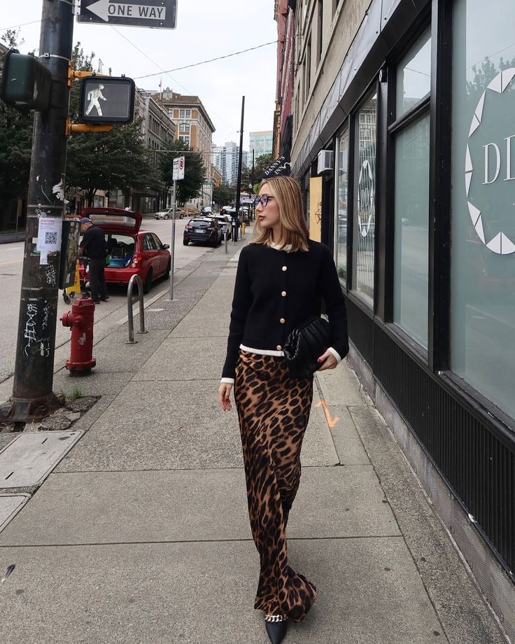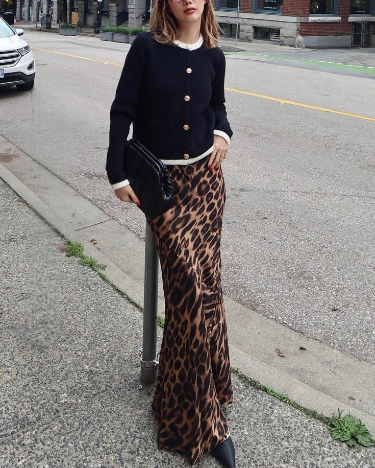 - Λεοπάρ μάξι σατέν φούστα για κομψό και εντυπωσιακό look