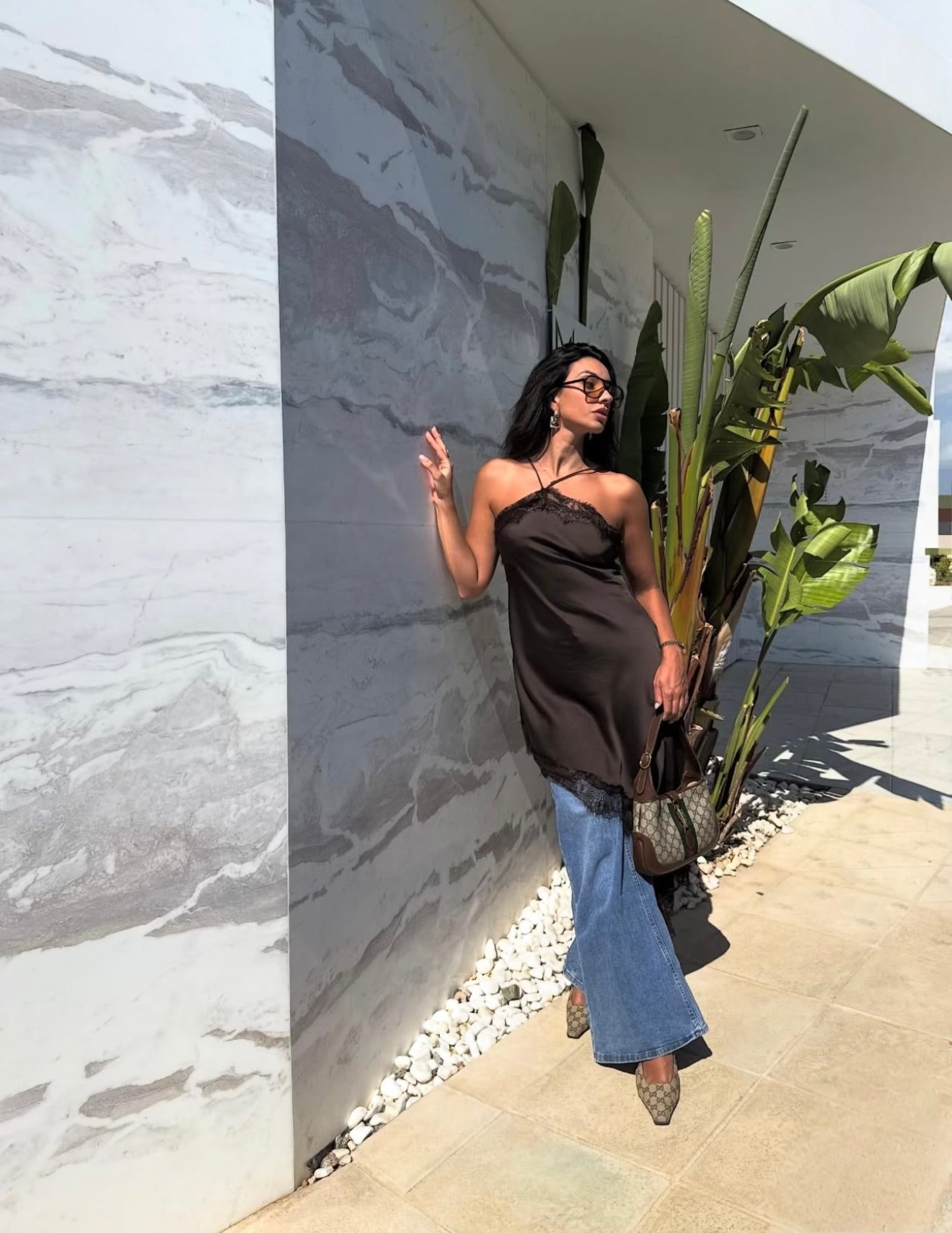 Ασύμμετρο Lingerie μπλούζα-φόρεμα halter